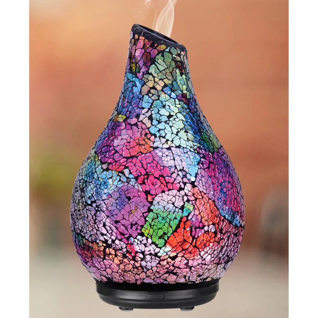 Az Ayan GL04 diffúzor kézzel készített, színes mozaik üvegernyője gyönyörű színes fényhatást bocsát ki bekapcsolt állapotban, díszíthet bármilyen hálószobát, nappalit, előszobát.